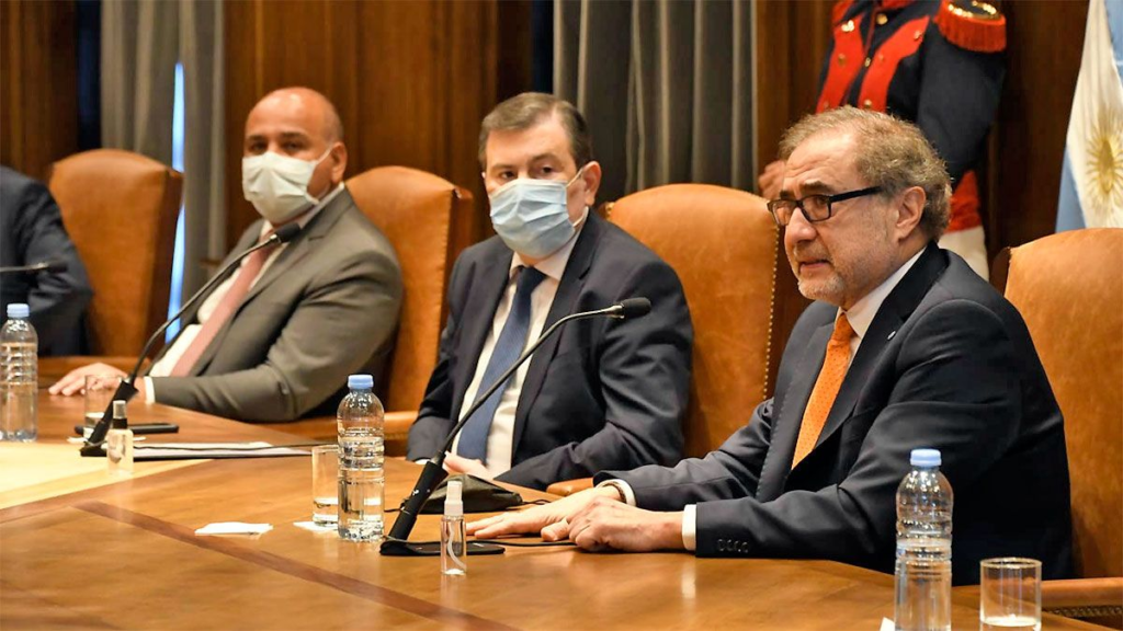 Estuvieron acompañados por el ministro del Interior, Eduardo de Pedro; el embajador argentino en los Estados Unidos, Jorge Arguello, y secretario general del Consejo Federal de Inversiones, Ignacio Lamothe.
